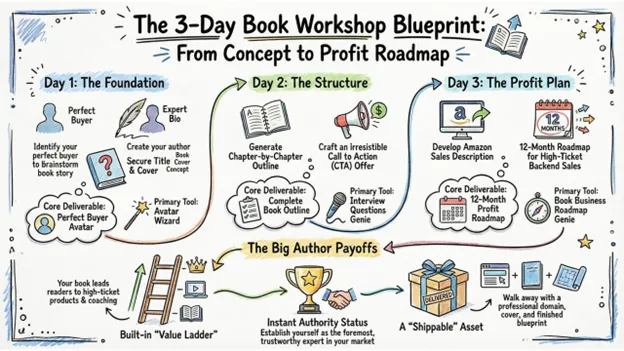 To make this even better, you'll also leave with a complete 12-month Book Profit Plan so you know exactly how this book will drive revenue for your business once it’s done… it’s like your own personal “Book Profit GPS!”